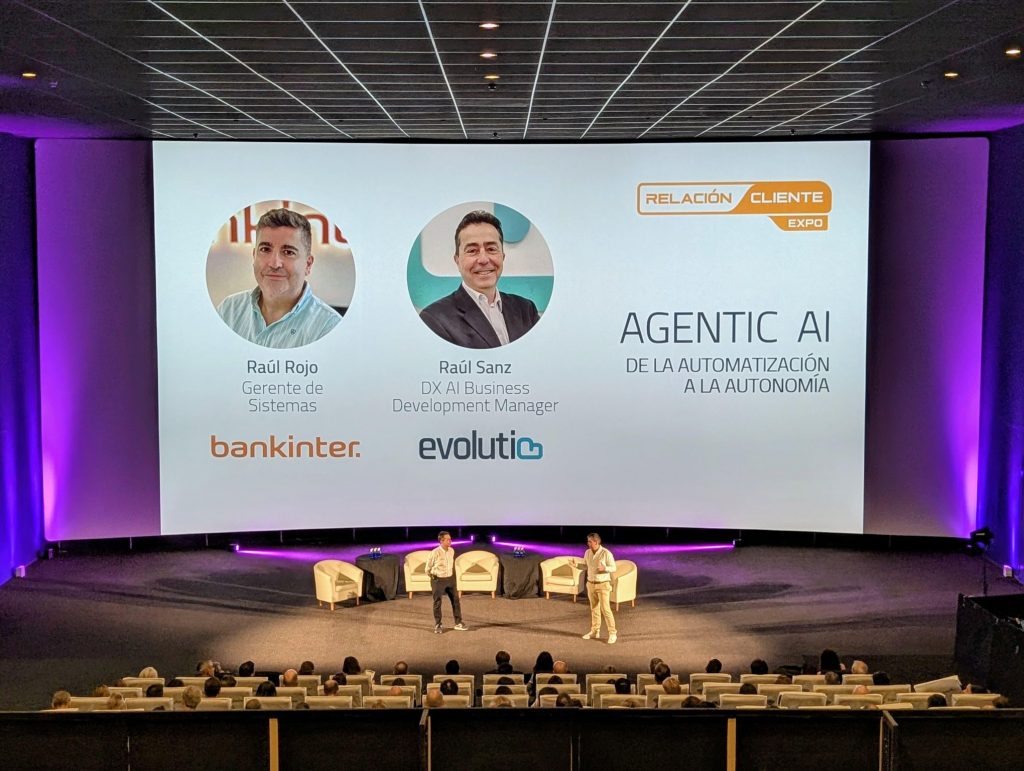 En la ponencia “AGENTIC AI: de la automatización a la autonomía”, Raul Rojo Calderero, Gerente de Sistemas en Bankinter y Raúl Sanz Esteban, DX AI Business Development Manager de Evolutio, han mostrado cómo la Agentic AI está redefiniendo la relación entre personas, procesos y tecnología.